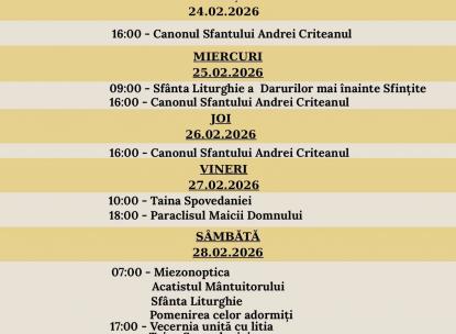 PROGRAM LITURGIC ÎN PRIMA SĂPTĂMÂNA A POSTULUI MARE 23.02-01.03.2026